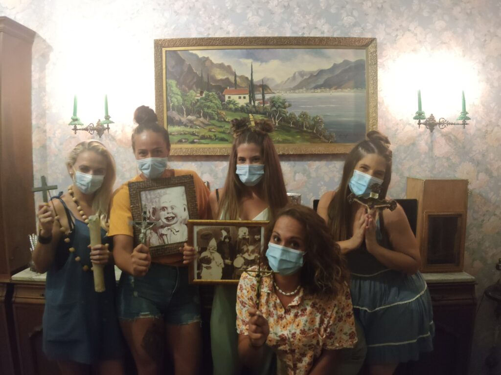 Estas cinco investigadoras decidieron embarcarse en una investigación sobre un extraño poltergeist. El miedo les paralizo, a algunos incluso el brazo. Pero rápidamente se recompusieron y descubrieron las atrocidades realizadas allí. Consiguieron liberar la casa de espíritus a tiempo. Enhorabuena equipo, nos vemos pronto en Arcadia Escape Room Sevilla.